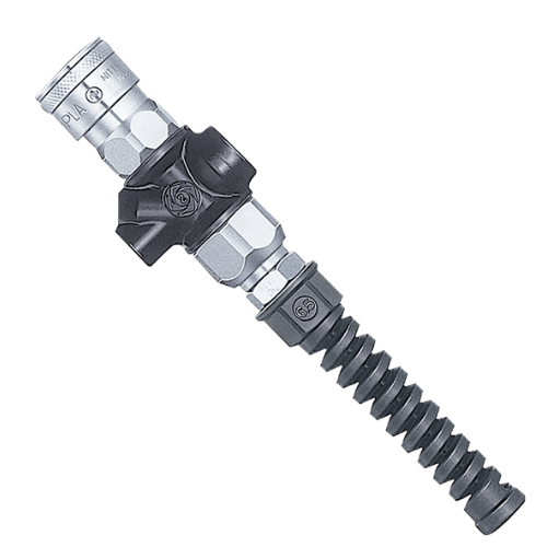 滾軸軸承式轉環結構可抑制軟管的扭曲,減輕手持負擔。